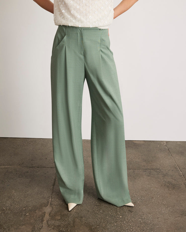 Featuring pleated tailoring at the waist, front slash pockets, and back pockets, Adler is a high-waisted pant intended to elongate and flatter with a lightweight ease.