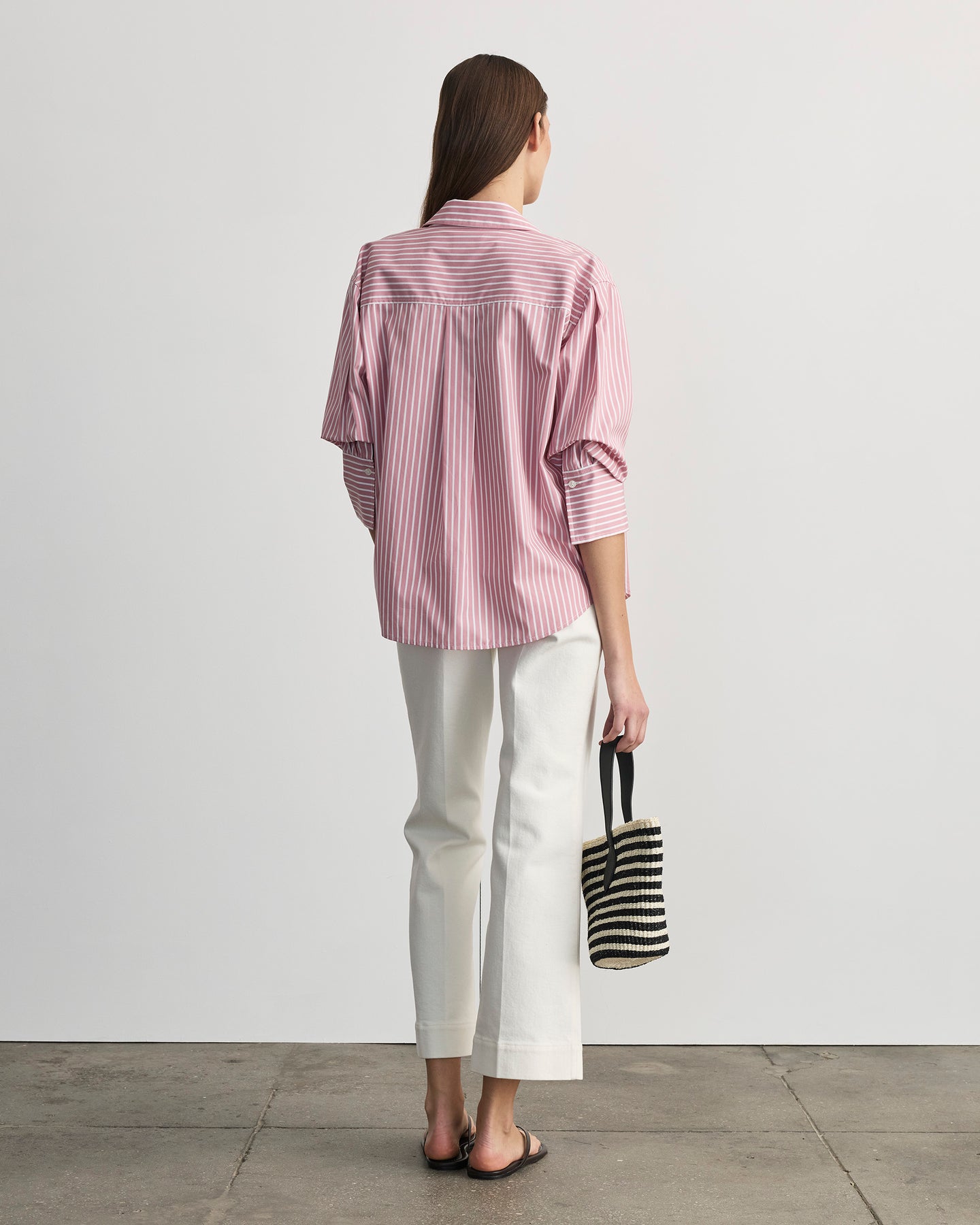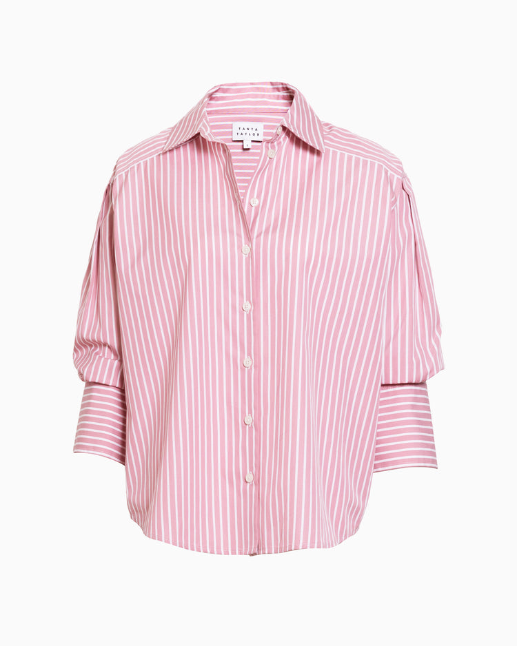 Designed in a crisp striped cotton shirting, the Emmy Top is a fresh take on a classic button-up shirt with a twist.