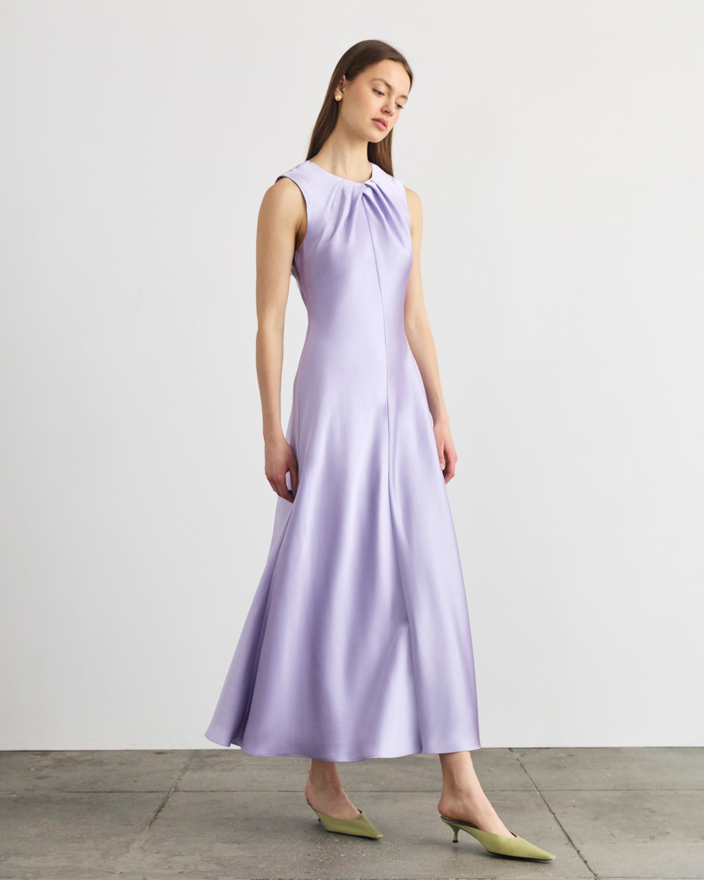 Featuring a crew neckline with intricately placed knife pleating and a bias cut silhouette, Emily is effortlessly elegant with the perfect proportions in mind.