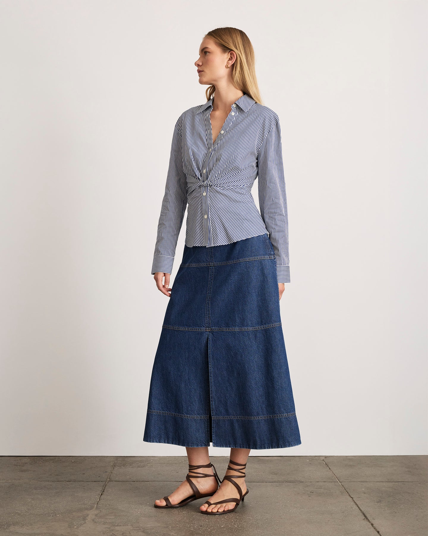 Style the Long Sleeve Oakley Top back to our denim Hudley Skirt for an everyday polished look.
