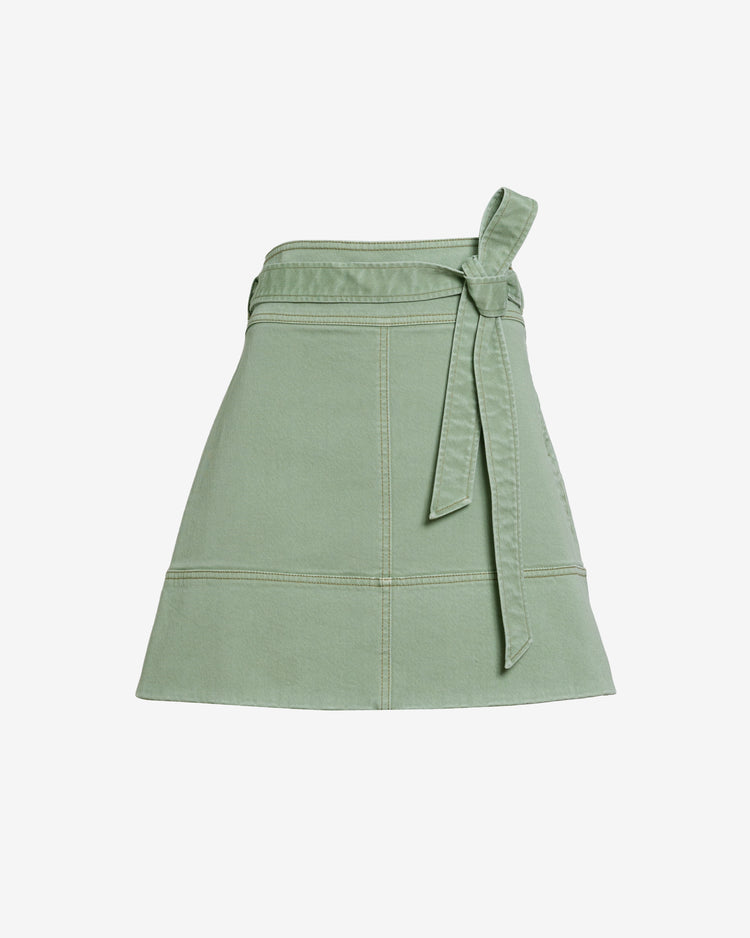 This modern mini skirt is both universally flattering and practical with a self-tie belt for added interest at the waist.