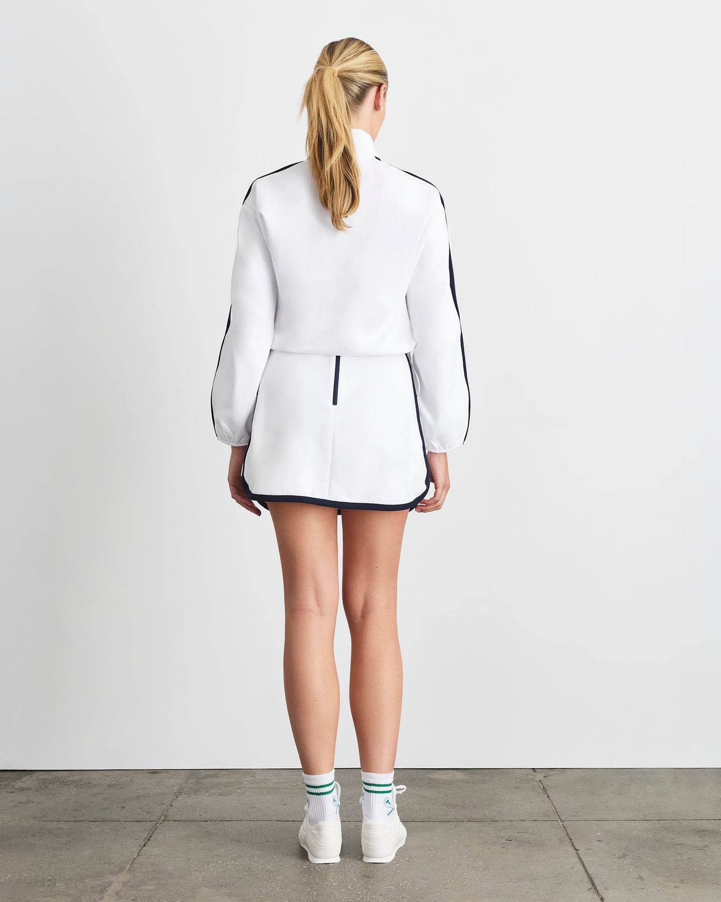 Featuring long elasticated sleeves, a 1/4 length contrasting zip, contrasting sleeve panels, and an adjustable drawstring hem, Maria is ready for the everyday. Lightweight yet polished, it layers effortlessly over polos, tanks, or tees, making it perfect for post-match hangs, city errands, or weekend outings.