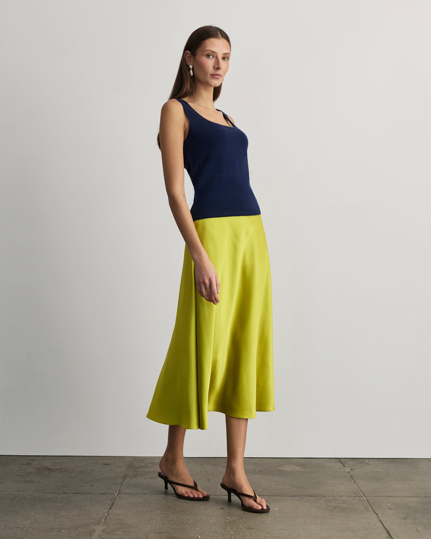 Pair the Rory Cashmere Tank back to the Beth Skirt and a kitten heel for an elevated day-to-night look.