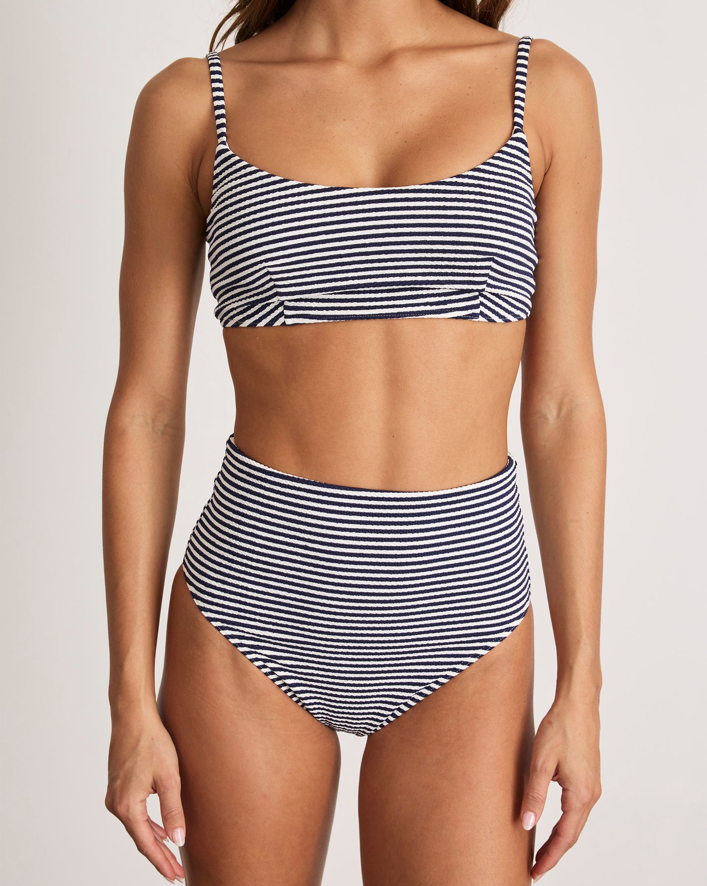 Designed in a textured stripe swim, the Seamless Kaia Bikini Top is an effortless silhouette with functional touches throughout.