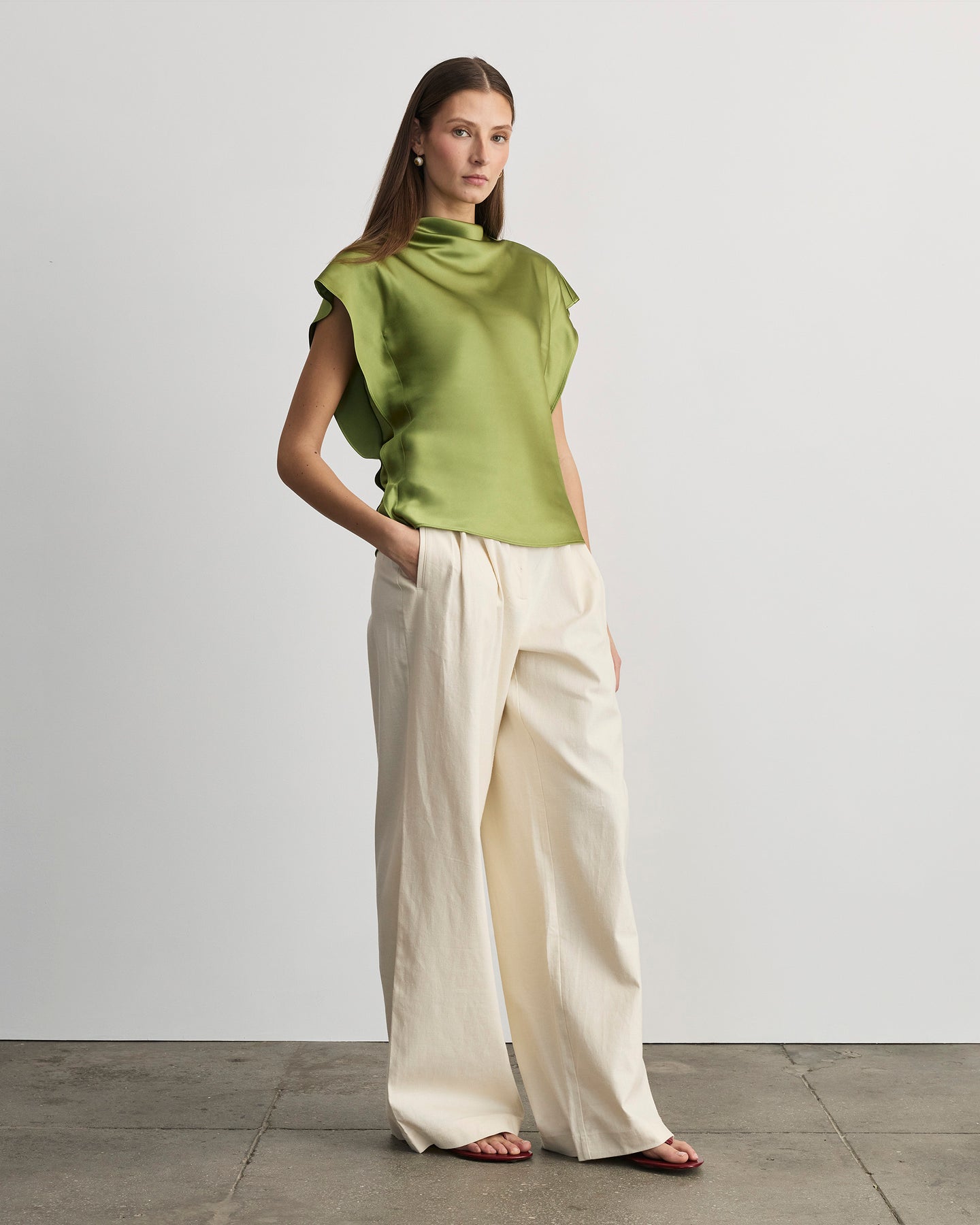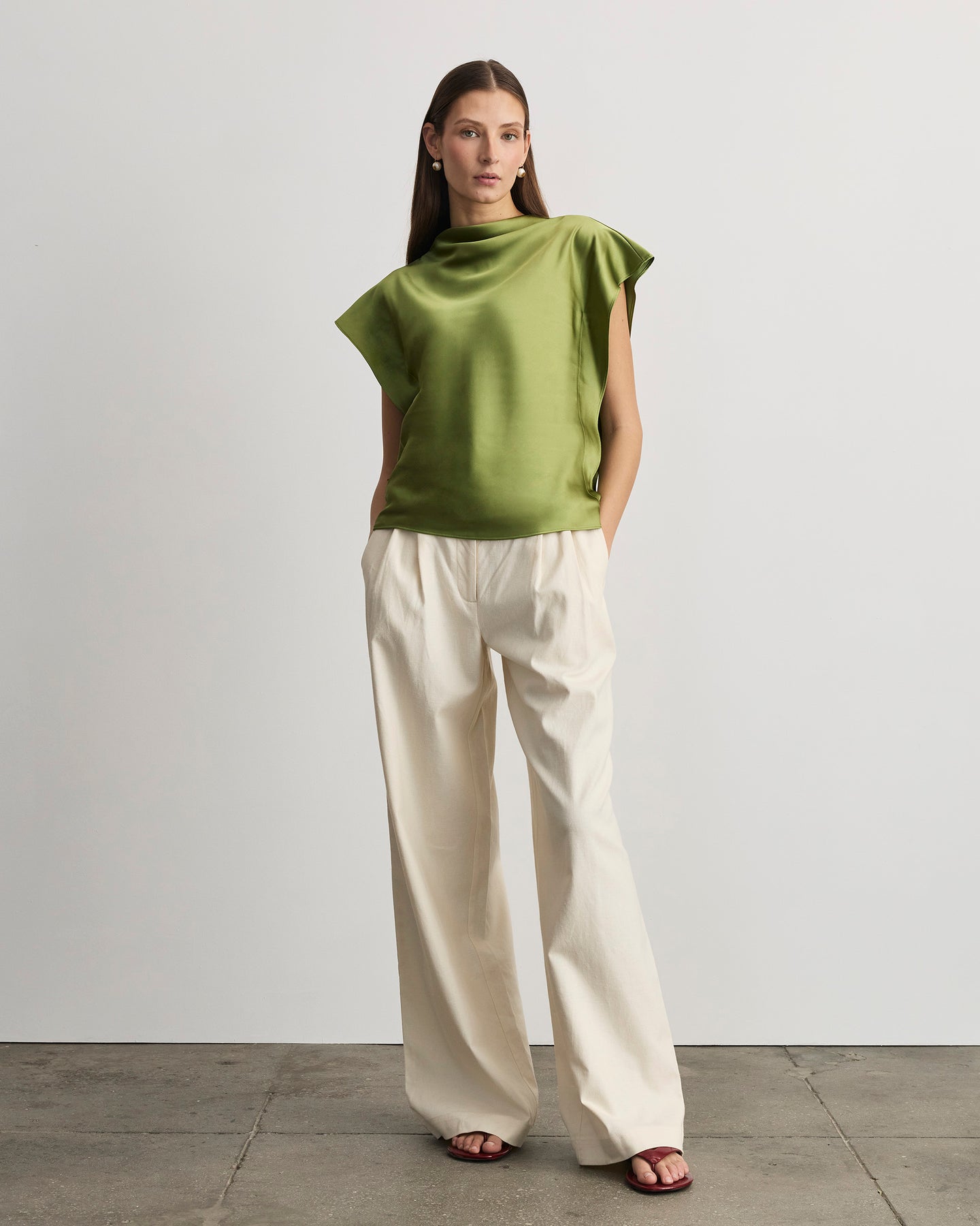 Pair the Adrien Top with the Jodi Pant for a sophisticated day-to-night Spring look.