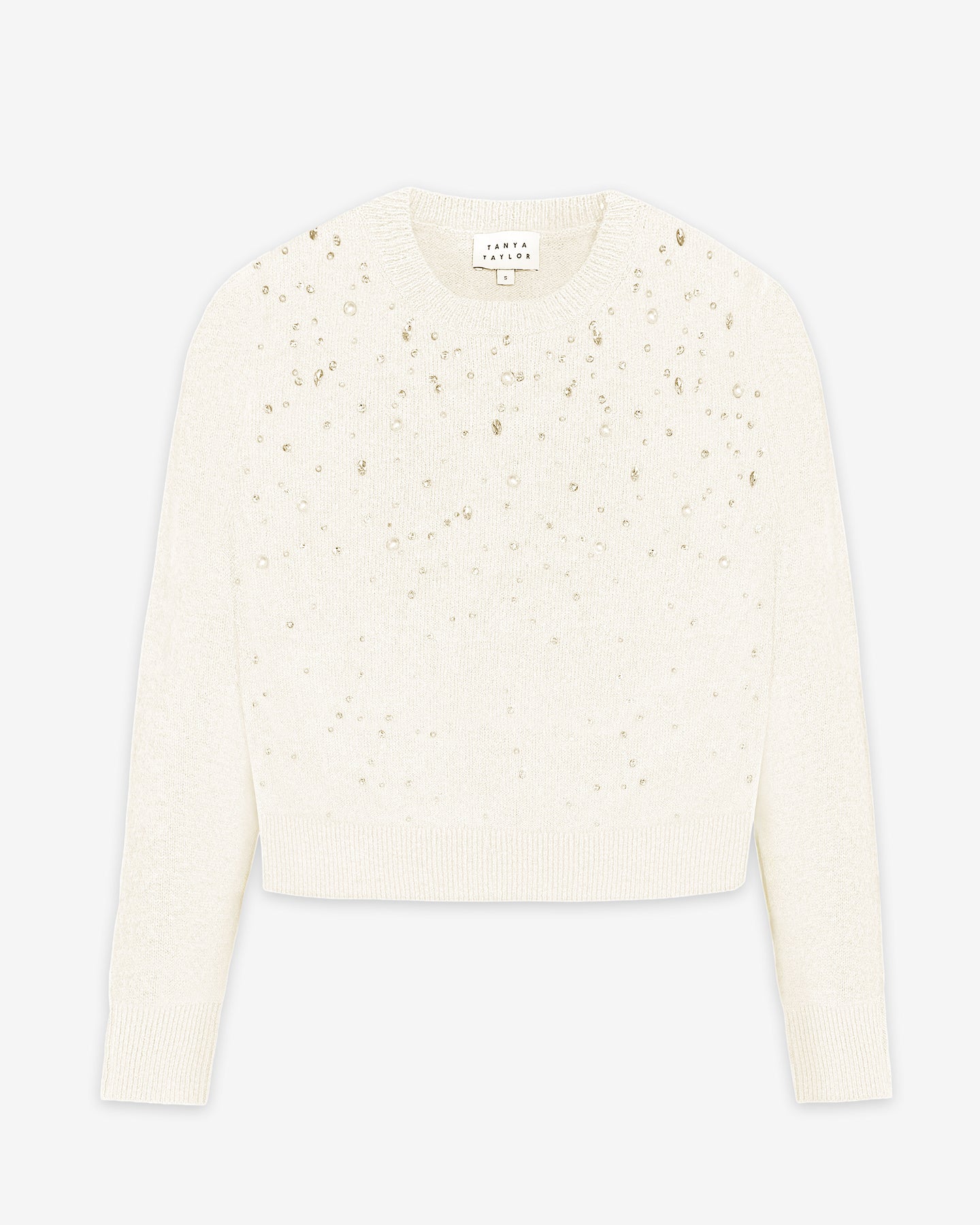 A signature silhouette, the Lexia Embellished Sweater is a one-of-a-kind knit back in new seasonal colorways this Fall.