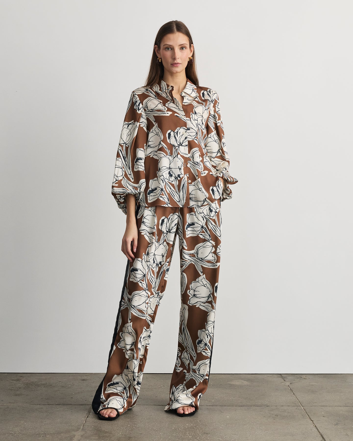 Style the Marina Shirt back to the Cropped Nicole Pant or its coordinating Jodi Pant for a polished day-to-night look.