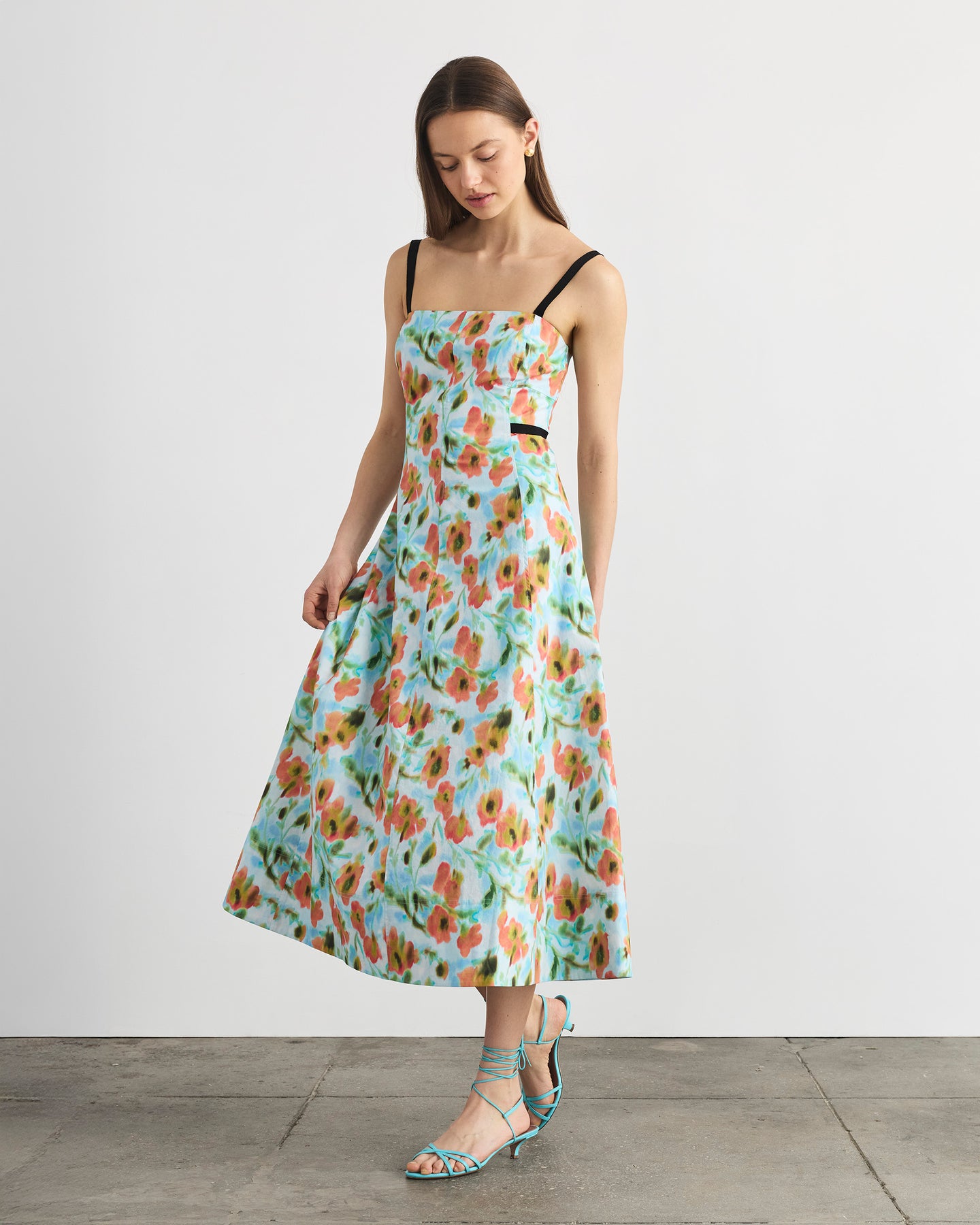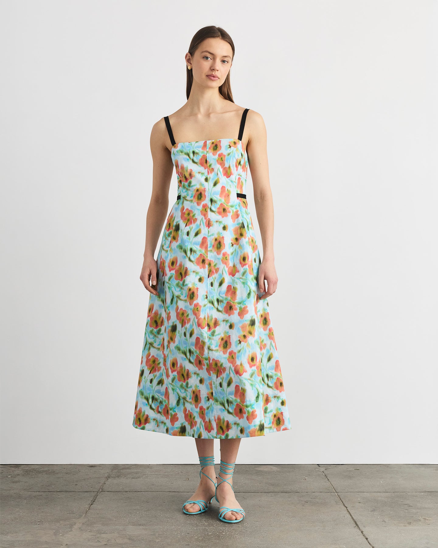 A best-selling style and standout silhouette of the season, the Tavia Dress is back for Spring, embodying fresh tailoring with effortless charm and a cascading floral print.